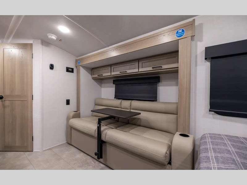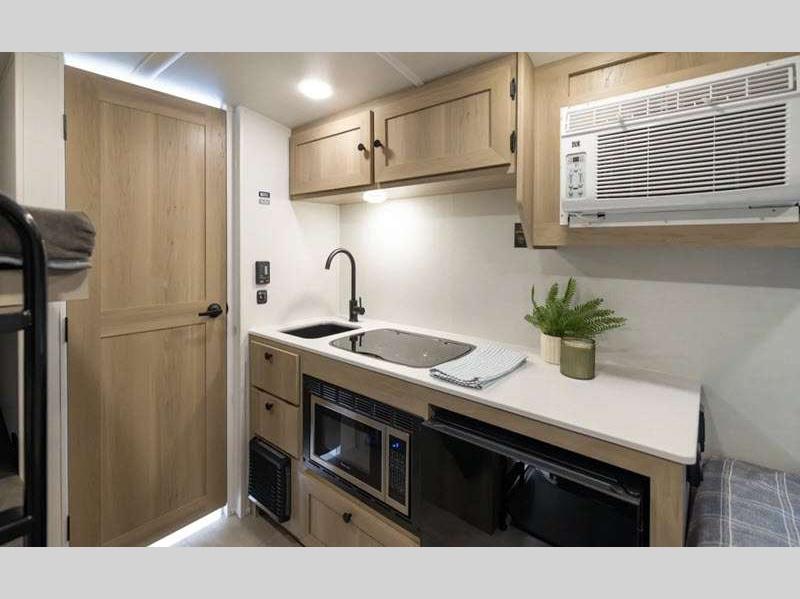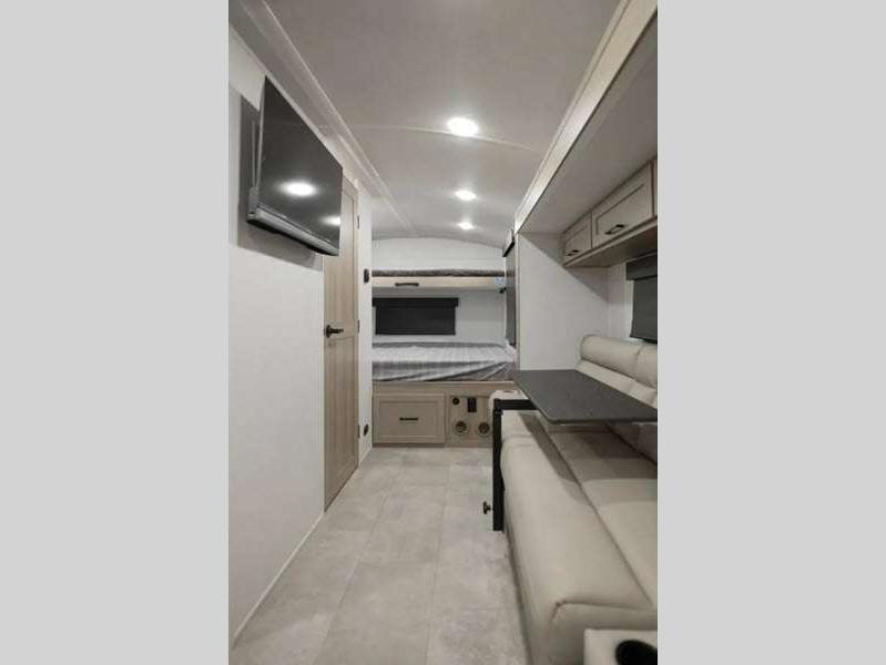 Sleeps 5 Slides 1 Length 21 ft 2 in Ext Width 7 ft 8 in Ext Height 10 ft 4 in Hitch Weight 501 lbs Dry Weight 3843 lbs Cargo Capacity 1155 lbs Fresh Water Capacity 31 gals Grey Water Capacity 27 gals Black Water Capacity 27 gals Furnace BTU 20000 btu Number Of Bunks 2 Available Beds Full Refrigerator Type 12V Convection Cooking Yes Cooktop Burners 3 Number of Awnings 1 LP Tank Capacity 20 lbs Water Heater Type Gas/Electric AC BTU 13500 btu TV Info 12V Smart TV Awning Info 14' Power Axle Count 1 Number of LP Tanks 2 Shower Type Standard Solar Wattage 200 watts Similar Floorplans