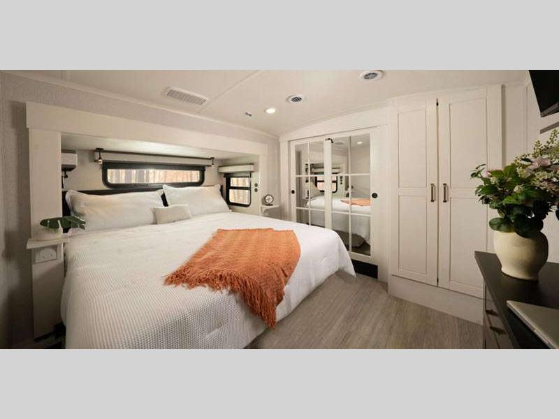 Sleeps 4 Slides 3 Length 36 ft 1 in Ext Width 8 ft 6 in Ext Height 13 ft 3 in Int Height 8 ft 6 in Interior Color Stonewall Gray Exterior Color Opt. Full Body Paint (Ash, Shadow, Glacier Blue) Hitch Weight 2405 lbs GVWR 16000 lbs Dry Weight 13060 lbs Cargo Capacity 2940 lbs Fresh Water Capacity 75 gals Grey Water Capacity 87 gals Black Water Capacity 50 gals Tire Size 215/75R17.5H Furnace BTU 40000 btu Available Beds King Refrigerator Type Residential Refrigerator Size 21 cu ft Convection Cooking Yes Cooktop Burners 4 Shower Size 36" x 48" Number of Awnings 2 Axle Weight 7000 lbs LP Tank Capacity 90 Lbs. Water Heater Type On Demand Tankless AC BTU 30000 btu TV Info LR 4K Smart LED HDTV, BR 32" 4K Smart TV Awning Info 10' & 16' Electric w/ Integrated RGB LED Lights Axle Count 2 Washer/Dryer Available Yes Shower Type Walk-In Shower Solar Wattage 400 watts Similar Floorplans