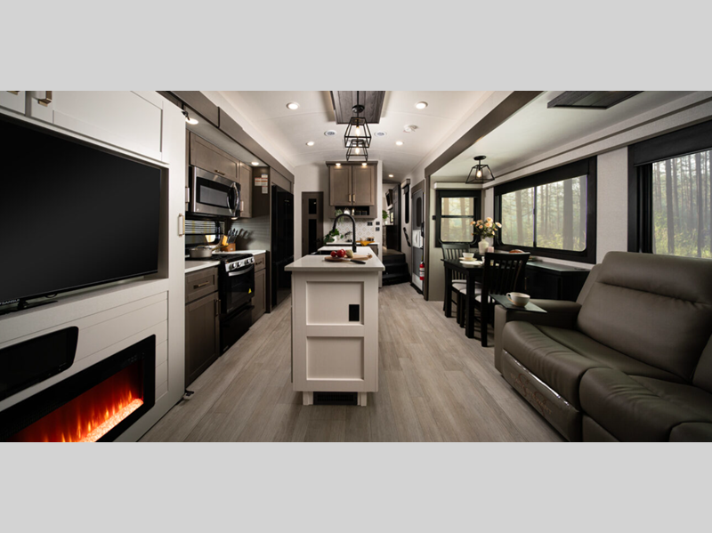 Heartland Milestone fifth wheel 39TB highlights: Loft 4K Smart LED HDTV Island ... more about Milestone 39TB