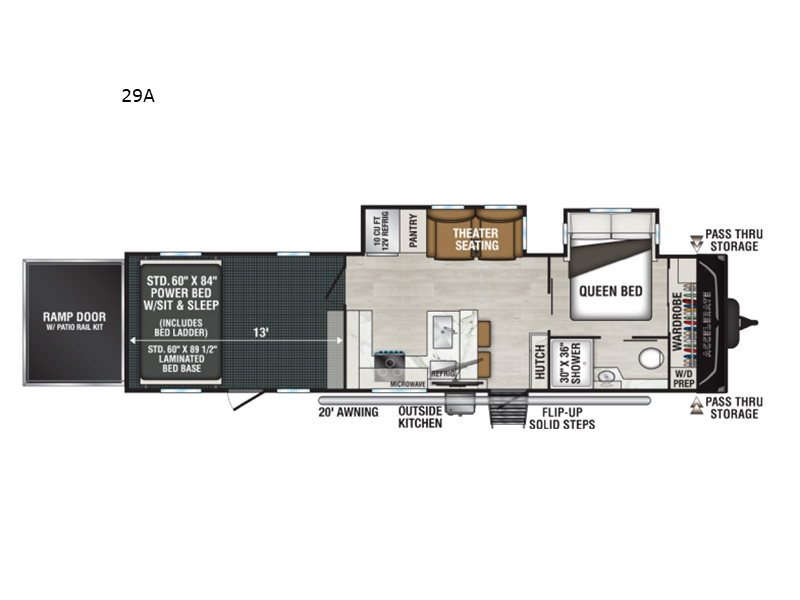 KZ Accelerate toy hauler 29A highlights: Queen Bed Slide Theater Seating Slide ... more about Accelerate 29A
