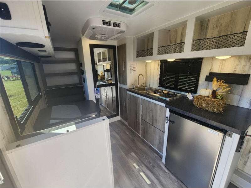 Sleeps 2 Length 17 ft 6 in Ext Width 7 ft 11 in Ext Height 8 ft 1 in Hitch Weight 248 lbs GVWR 2500 lbs Dry Weight 2020 lbs Cargo Capacity 480 lbs Fresh Water Capacity 10 gals Grey Water Capacity 30 gals Black Water Capacity 15 gals Tire Size 13" Furnace BTU 18000 btu Refrigerator Type 12 Volt Refrigerator Size 3.3 cu ft Cooktop Burners 2 Shower Size 24" x 36" Axle Weight 3500 lbs LP Tank Capacity 20 lbs Water Heater Type On Demand Tankless AC BTU 15000 btu Axle Count 1 Number of LP Tanks 1 Shower Type Standard Electrical Service 30 amp Similar Floorplans