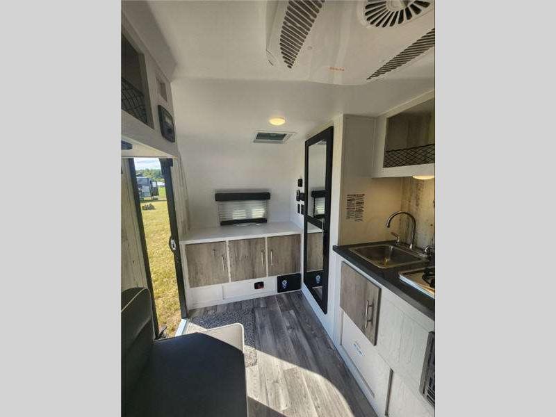 Sleeps 2 Slides 1 Length 17 ft 6 in Ext Width 7 ft 11 in Ext Height 8 ft 1 in Hitch Weight 288 lbs GVWR 2500 lbs Dry Weight 2202 lbs Cargo Capacity 1298 lbs Fresh Water Capacity 10 gals Grey Water Capacity 30 gals Black Water Capacity 15 gals Tire Size 13" Furnace BTU 18000 btu Refrigerator Type 12 Volt Refrigerator Size 3.3 cu ft Cooktop Burners 2 Shower Size 24" x 36" Axle Weight 3500 lbs LP Tank Capacity 20 lbs Water Heater Type On Demand Tankless AC BTU 15000 btu Axle Count 1 Number of LP Tanks 1 Shower Type Standard Electrical Service 30 amp Similar Floorplans