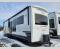 This incredible destination trailer has everything you need to live life to the fullest. Imagine retreating to a peaceful rear bedroom, complete with a king bed slide, spacious wardrobe, plus a closet with washer and dryer prep. Unwind and pamper yourself in style in the incredible full bathroom, featuring a linen closet, medicine cabinets, and a fiberglass shower with a seat. The living room is the heart of the home, boasting a comfortable sectional sofa, ottoman, and entertainment center perfect for gathering with family or friends and creating unforgettable memories. The loft is a cozy retreat for kids or guests, featuring two bunk mats, and a dual wardrobe/bookcases for their things. The front kitchen has a 19 cu. ft. refrigerator, overhead cabinet, microwave, three-burner cooktop, and free-standing dinette with a waterfall edge, and the pantry provides ample storage for all your favorite foods. Finally, step outside and enjoy the shade and protection of the two awnings and the two entry and two exit doors will make it easy to come and go.